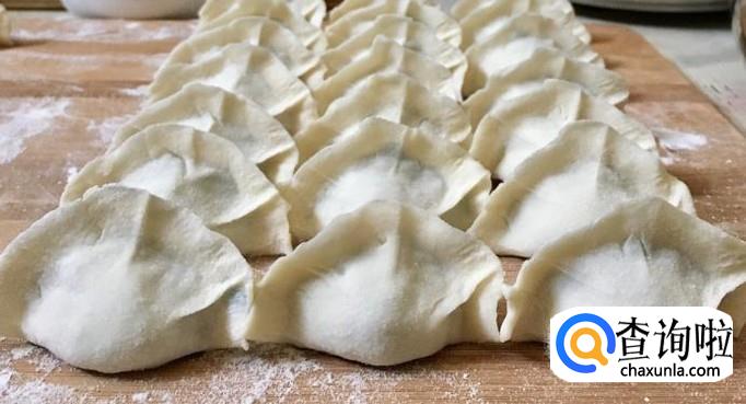 饺子皮中间放入足足的馅料,对折后捏紧包成饺子即可