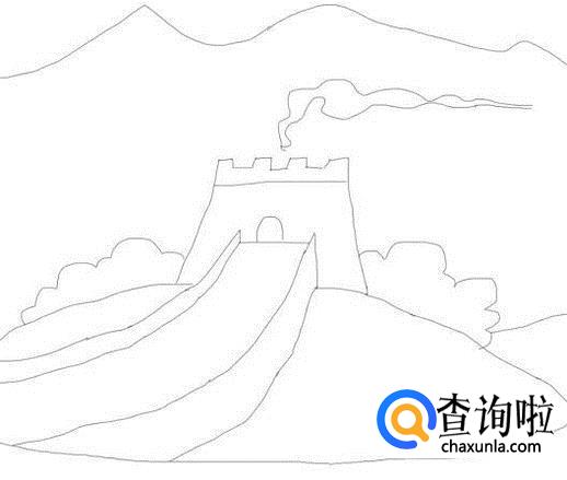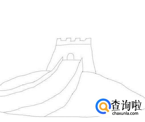 最后再在远处画出山形,并在画出远处的长城的墙体,这样简笔画层墙我们就画好了,如图所示: