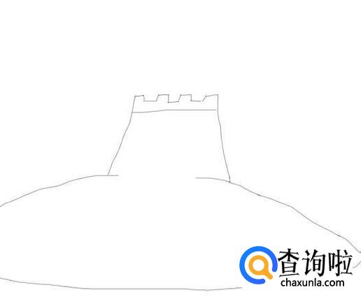 在垛口上画出城门洞,然后再在垛口的基础上我们再画出长城的城墙,如图所示: