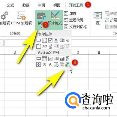 鼠标点击“插入按钮”下拉按钮,弹出菜单再如图所示点击“其他控件”