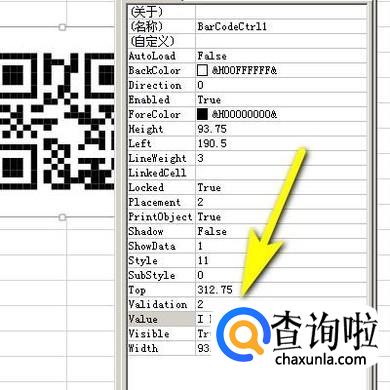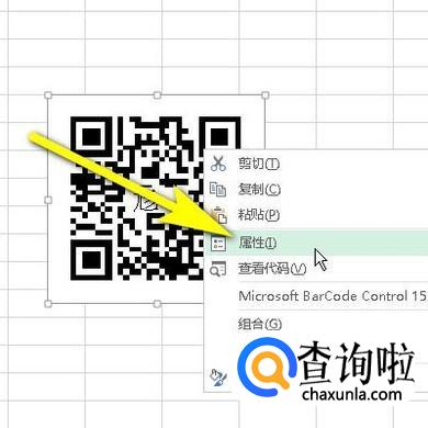 此时,图形已变成了二维码的样式;鼠标再次右击图形。弹出菜单再点:属性。如图所示。