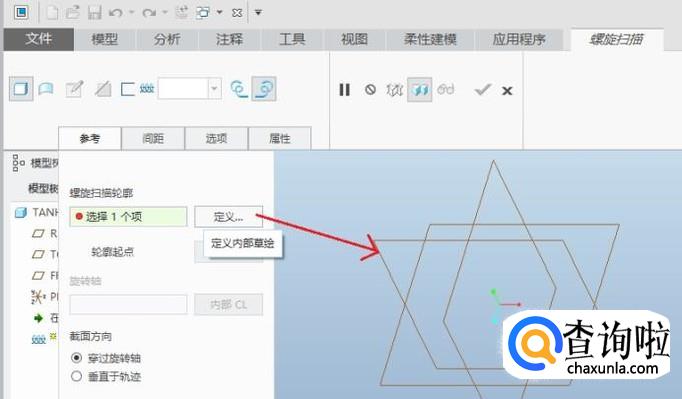 选择螺旋扫描,点击参考,定义,选择top面为草绘平面
