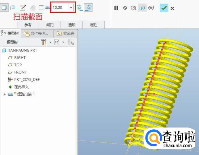 点击编辑扫描截面,草绘一个圆作为截面,螺距值改为10