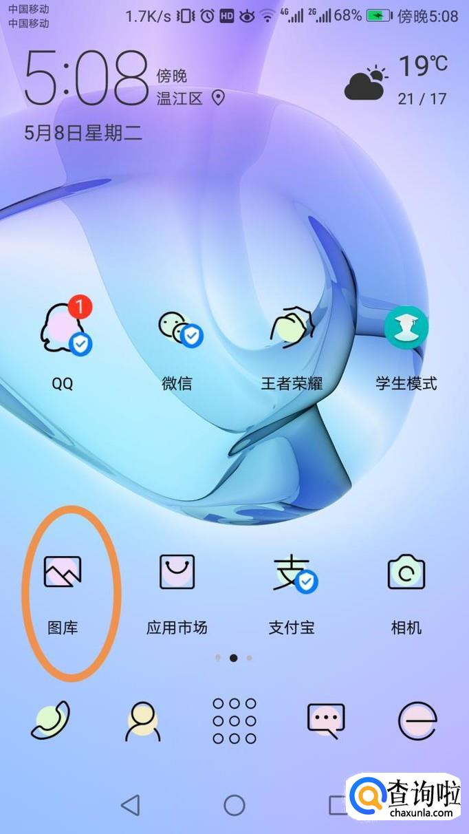 首先在主页面打开【图库】,如图所示