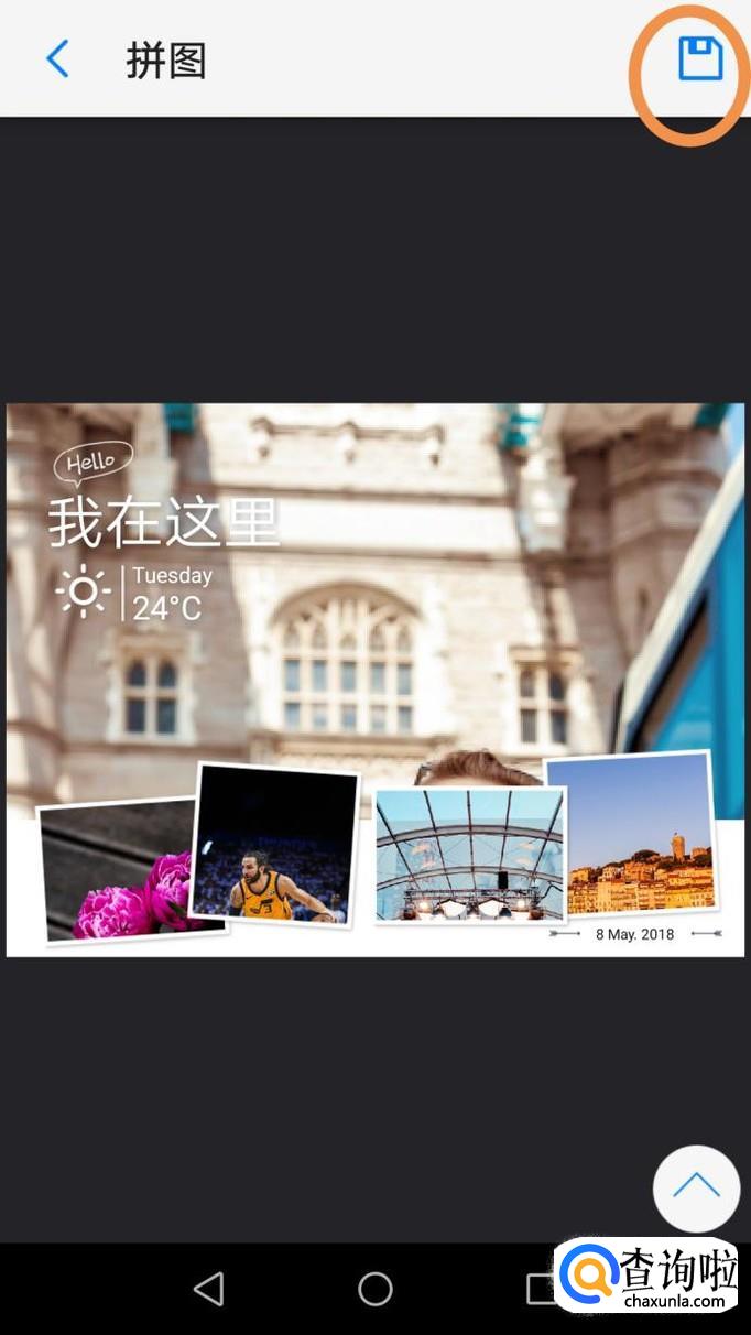最后海报拼图就完成了,点击右上角的图标,即可保存海报拼图,如图所示