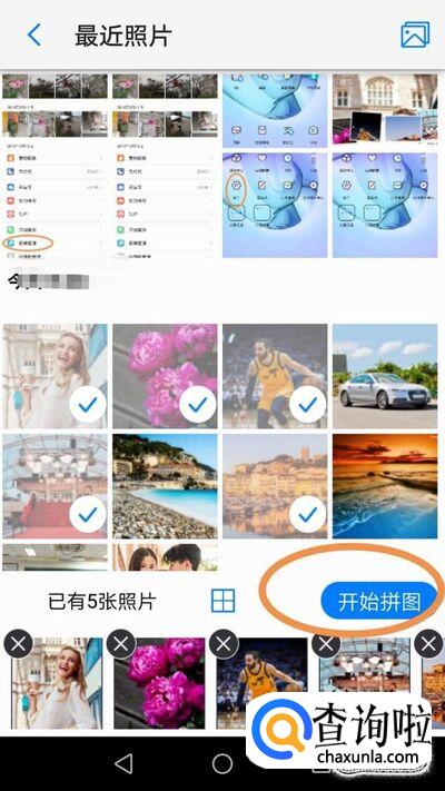 然后选择2到5张图片,选好后点击【开始拼图】,如图所示
