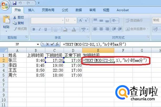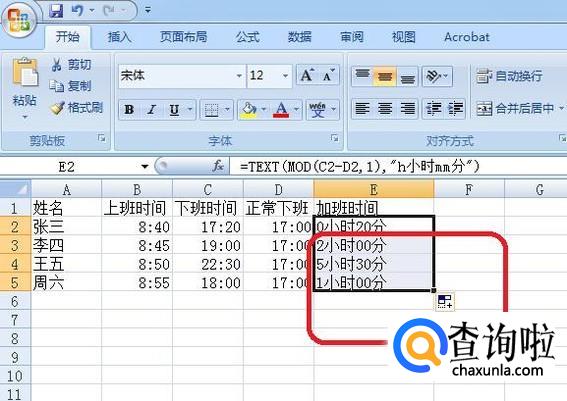 该员工的加班时间就出来了,下拉单元格填充格式,则其余员工的加班时间就自动计算生成。