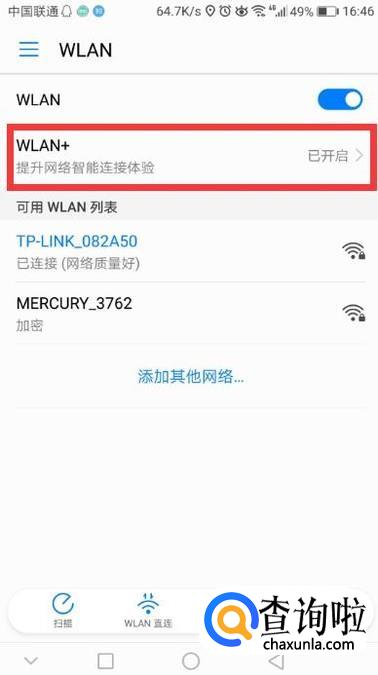 打开wlan开启wlan+功能