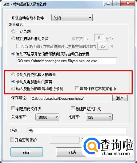 在设置界面的下图红框位置,将其设置为“录制从电脑播放的声音”,并点击确定按钮,这样该软件就变身为了一款内录软件了。