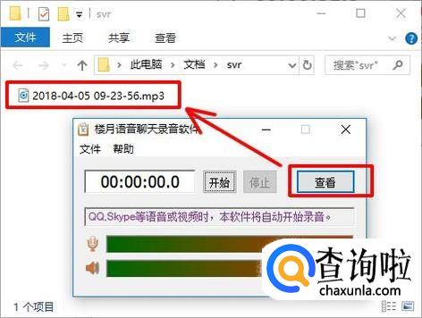 最后,点击软件界面上的“查看”按钮,就可以快速进入刚才录制下来的MP3文件保存的目录,软件默认情况下把音频文件保存在我的文档下的svr文件夹中,我们也可以在设置界面修改这个保存的目录。