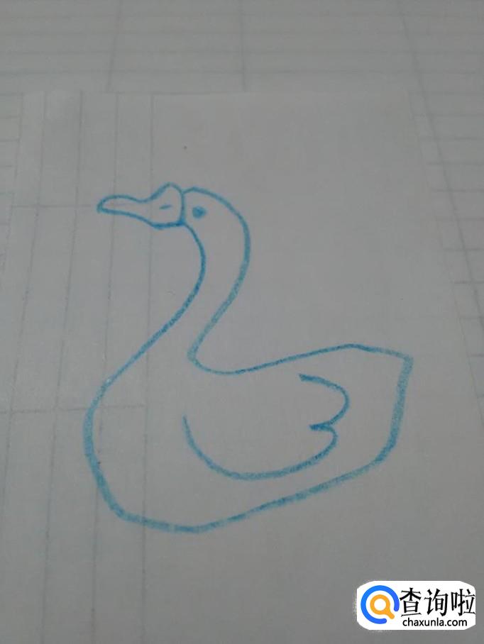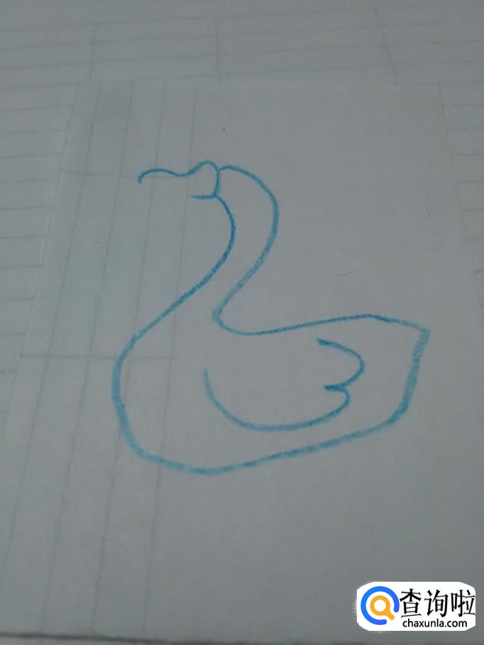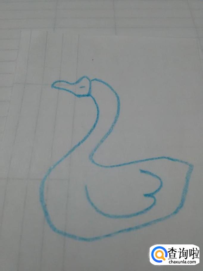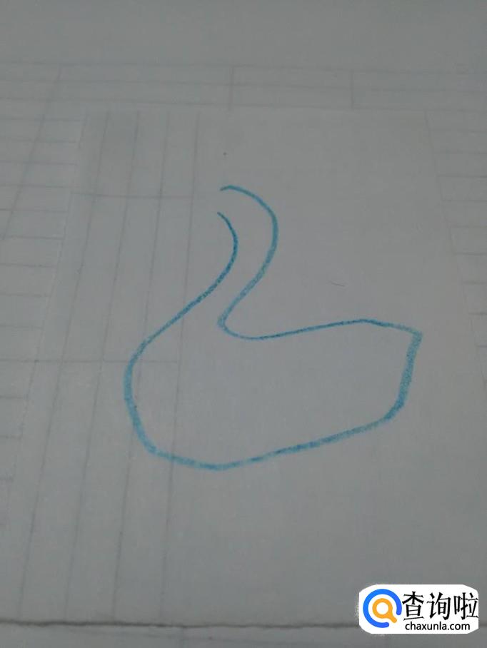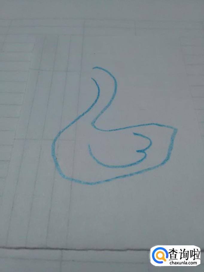 先用蓝笔在纸上画一个2,表示鹅的头部、脖子和背。