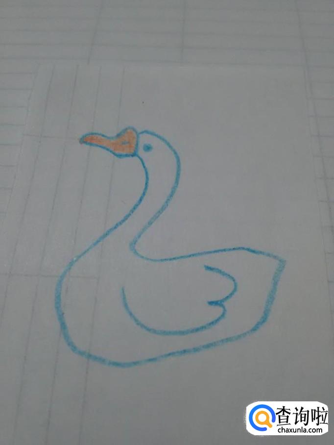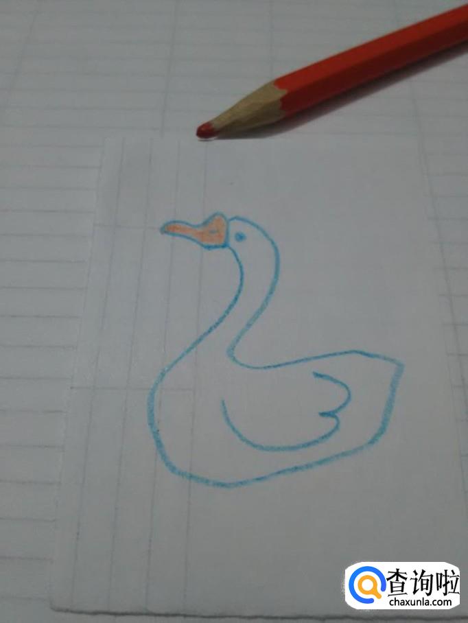 最后用橘色笔将鹅的嘴涂上颜色,大白鹅就画完了。