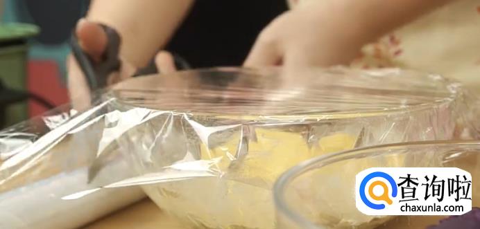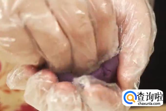 紫薯泥分成25克每个,紫薯泥将芝士包裹住,搓圆盖上保鲜膜。