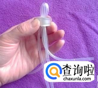 然后用带圈的零部件固定到,用剪刀剪细输液管