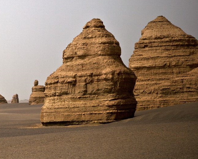 雅丹在世界上许多的干旱区都可以找到,在中国也并不仅限于新疆。从青海的鱼卡向西通往南疆的公路沿途非常荒凉,在南八仙到一里平公路道班之间都可以看到“雅丹”,是西北内陆的最大一片“雅丹”分布区。但新疆的雅丹地形分布最多,除了罗布泊和古楼兰一带的雅丹外,克拉玛依的“魔鬼城”、奇台的“风城”等也都是典型的雅丹地貌。雅丹的形成有两个关键因素。一是发育这种地貌的地质基础,即湖相沉积地层;二是外力侵蚀,即荒漠中强大的定向风的吹蚀和流水的侵蚀。