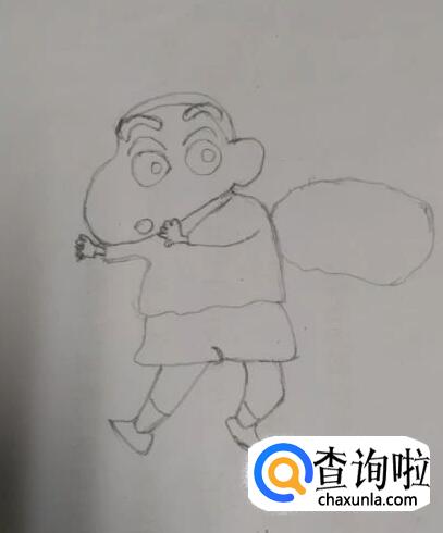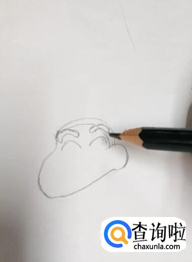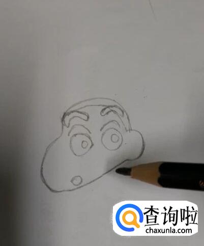 先在画面中央稍靠左的位置,画出小新的头和耳朵。