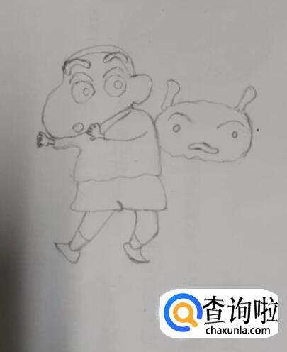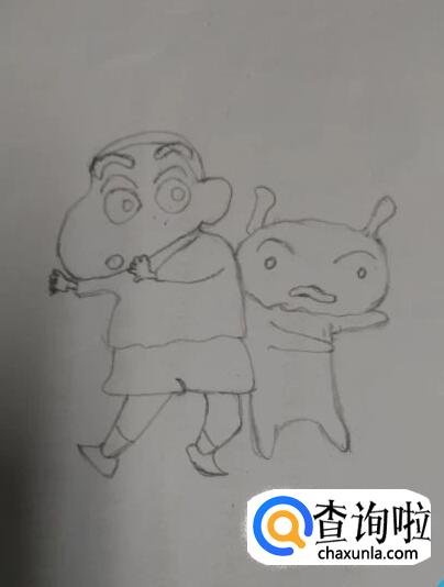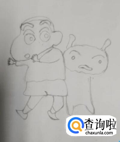 上色,在其后勾一条线当背景,蜡笔小新和他的小白便画完了。