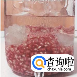 石榴的颜色会慢慢融到酒里,同时冰糖会慢慢融化。等冰糖全部融化以后,就放入冰箱保存,还是可以每隔几天就拿出来晃晃