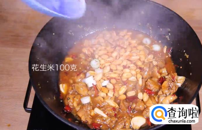 翻炒均匀后,加入豆瓣酱继续翻炒。然后,将刚才调好的酱汁倒进去炒几下,再加入葱段和花生米,翻炒一会儿就可以出锅了。这样,宫保鸡丁就完成了。