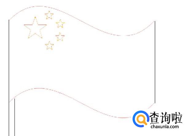 然后,我们在旗帜的左上角加上五颗星星。四个小的围着一个大的。