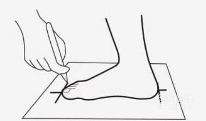 测量方法:首先准备一张白纸,然后将脚踩在白纸上,用笔在脚前后最高点画线,需要确保两线间距为正确的脚长。
