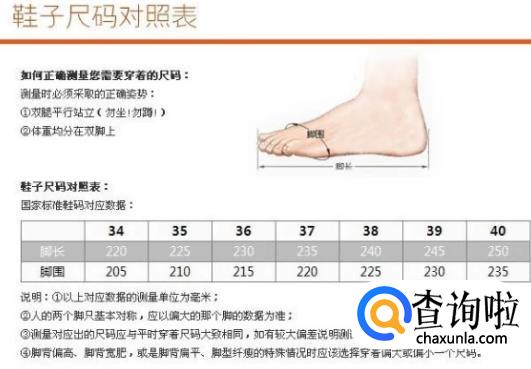 不同牌子的鞋子尺码不太一样,一种牌子不同款式的鞋子或多或少也有不同,请以实际为准。最好试试或根据自己平时穿的鞋子参考一下。鞋子穿上大点比较好,大差不多一个手指这么厚吧,这样脚会比较舒服。如果走路时间长了脚会有些张,穿小了走的时间长了就夹脚了。