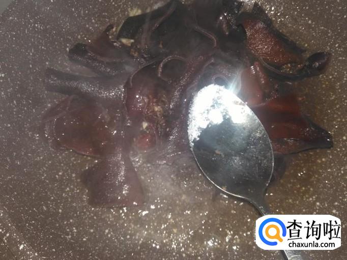 猪心1个,干木耳10克,香葱、姜蓉、蒜米适量,1勺耗油,1勺生抽。