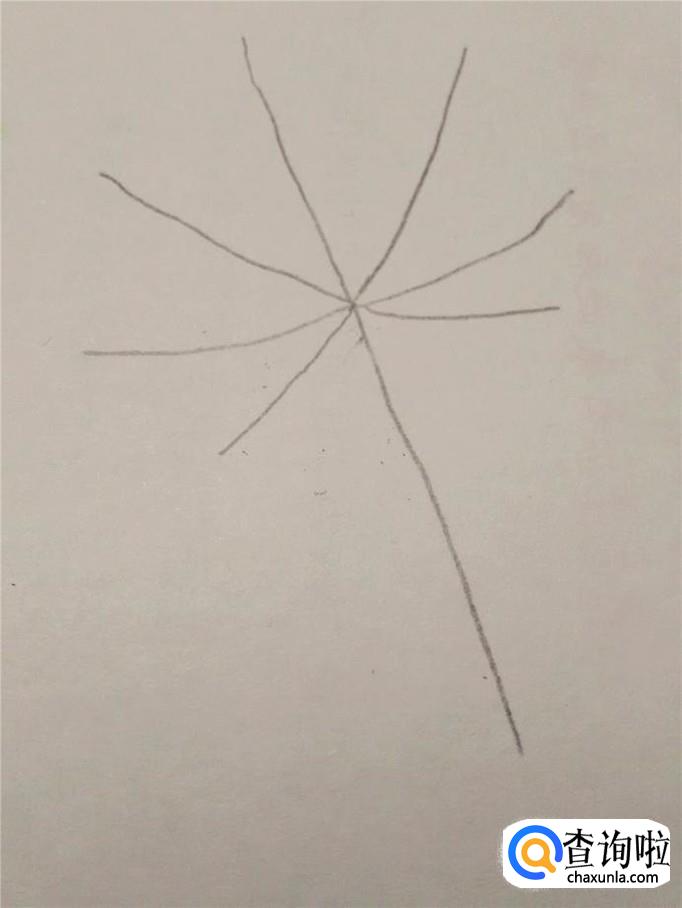 用笔在每条直线的两侧,画出对称的小段直线,表示叶脉。