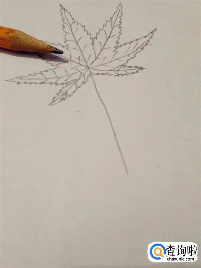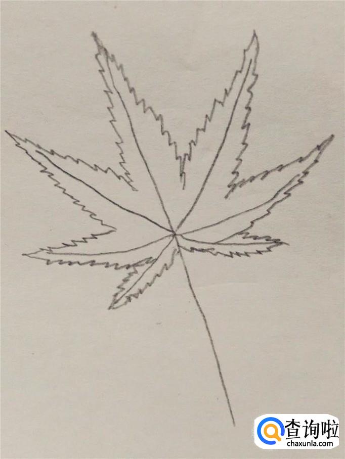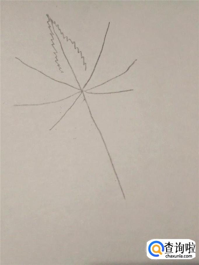 在这条直线的左右两边各画三条线,表示这片枫叶上的分支叶片。