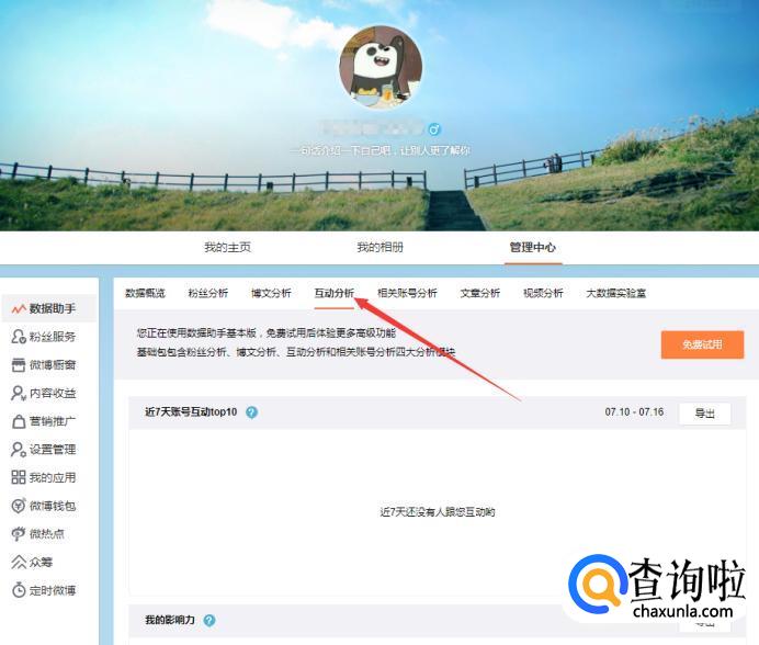 然后选择到【互动分析】,就可以看到新浪微博的最近访客了。