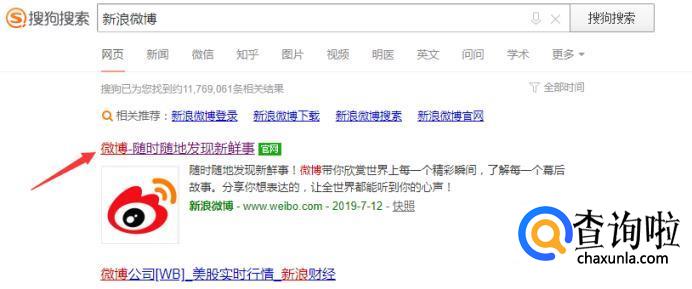 在搜索的候选项中选择到【新浪微博官网】打开。