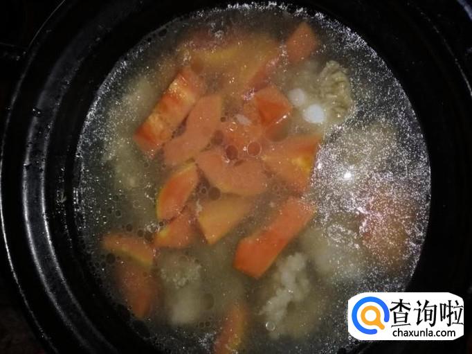 开盖,即可食用。一砂锅排骨木瓜汤就弄好了,喜欢的话可以试试哟!