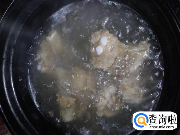 将排骨放入砂锅中,加入适量的水,调大火,煮开。