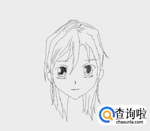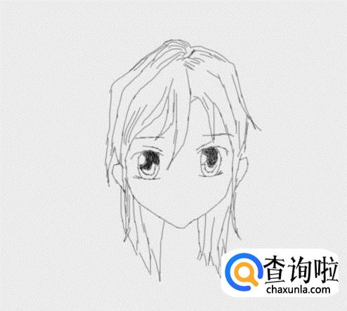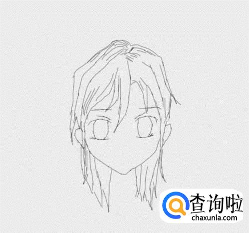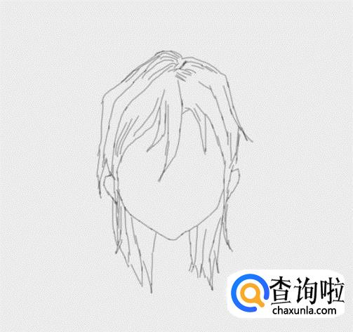 绘制好头发之后在头发的基础上画出人物的面部,并在面部的两侧画出人物的两只耳朵,如图所示: