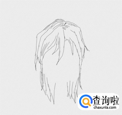 首先我们画出动漫人物的头发造型,然后再在头发上画出发丝,如图所示:
