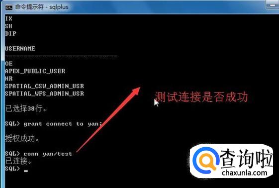 授权成功以后,可以通过conn命令测试连接权限是否开通成功,如下图所示