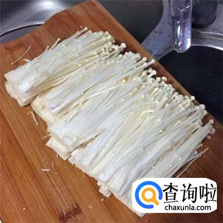 金针菇的底部全部切掉,这个不要心疼,吃起来口感特别老根本嚼不动。清水清洗干净然后分开一条条的,不要整个的。