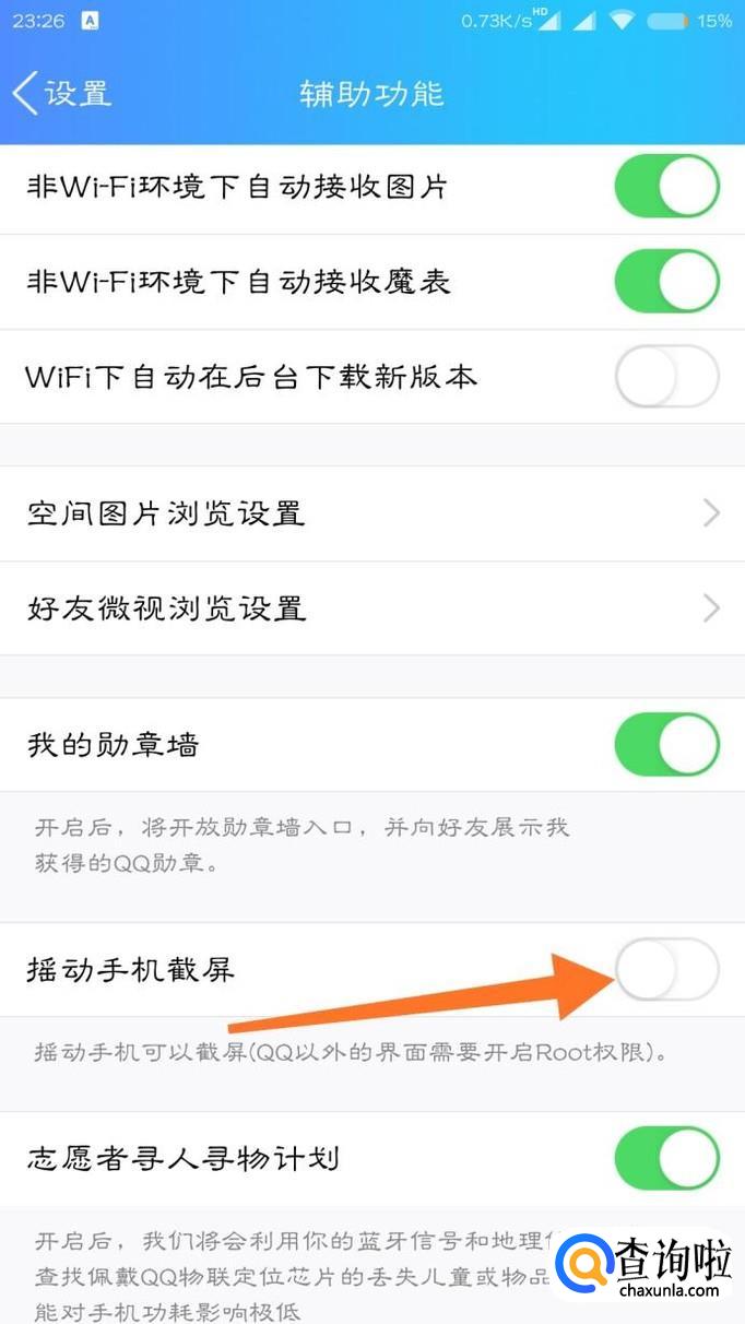 辅助功能里面有一个摇动手机截屏的功能,点击半圆按钮开启即可摇动截屏。