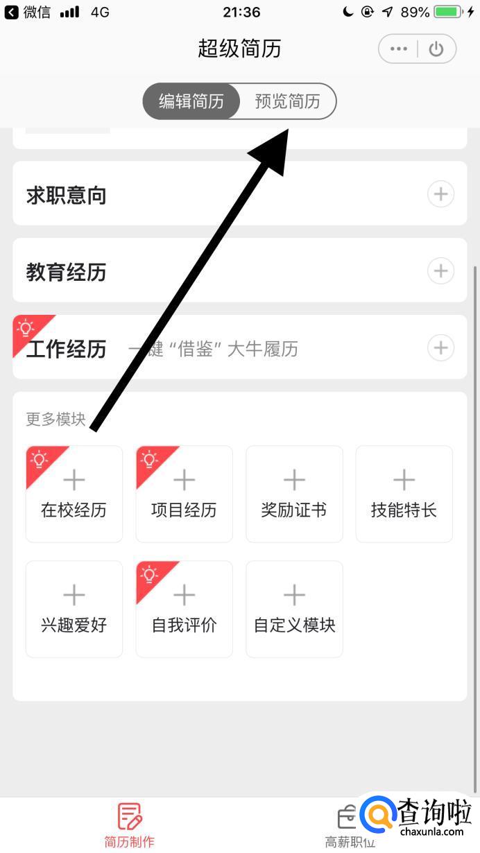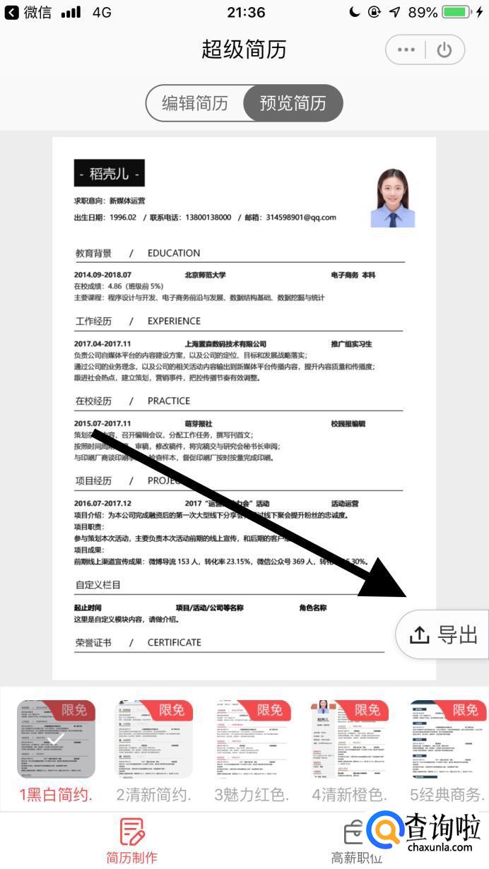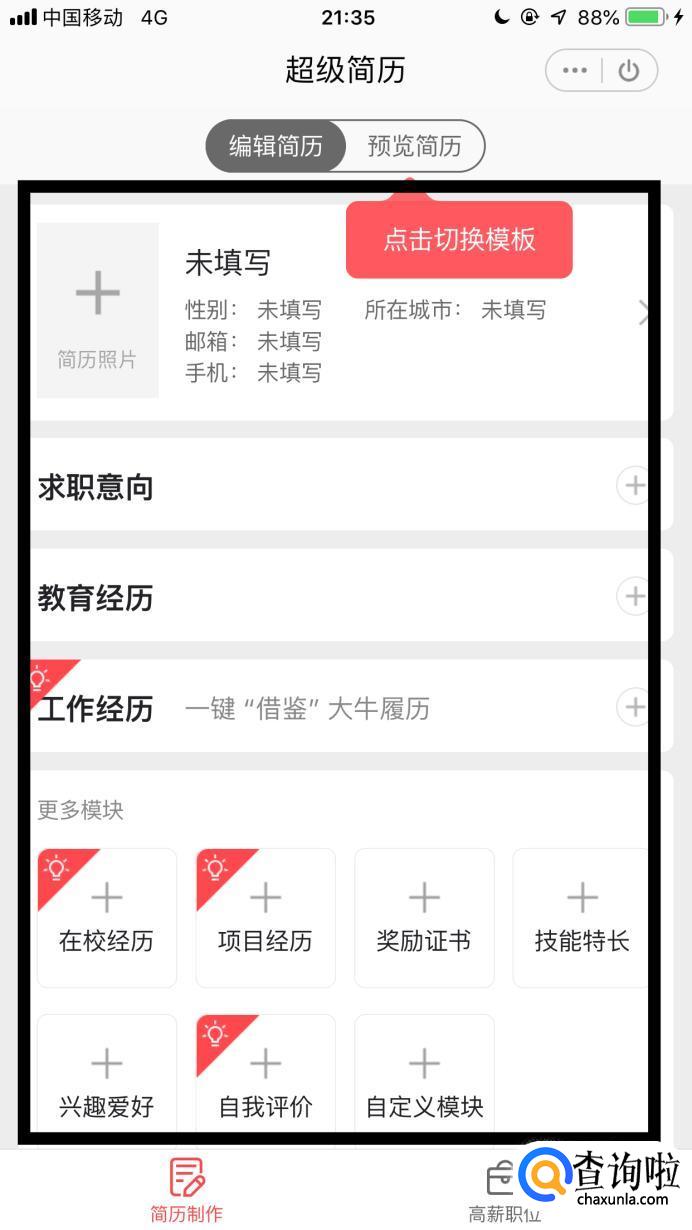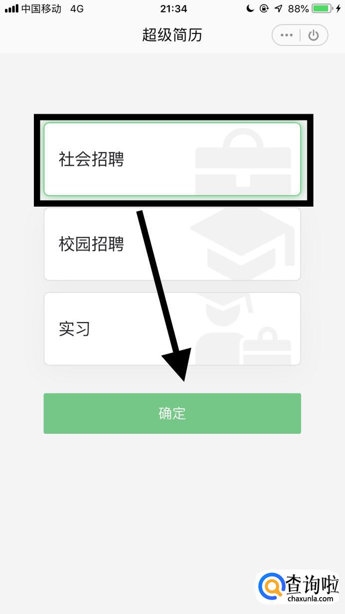然后选择想要的简历类型并点击确定。本指南以社会招聘为例。