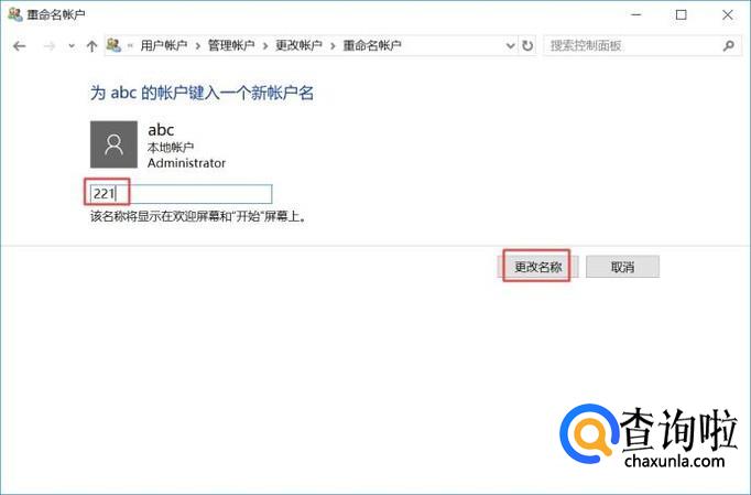 之后我们输入新的账户名称,然后我们点击更改名称就可以了。
