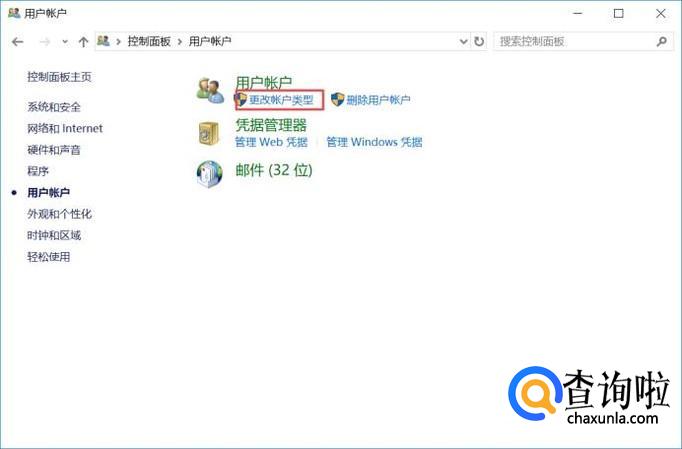 弹出的界面,我们点击更改账户类型;