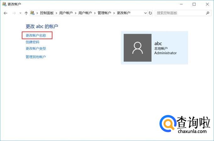 弹出的界面,我们点击更改账户名称;