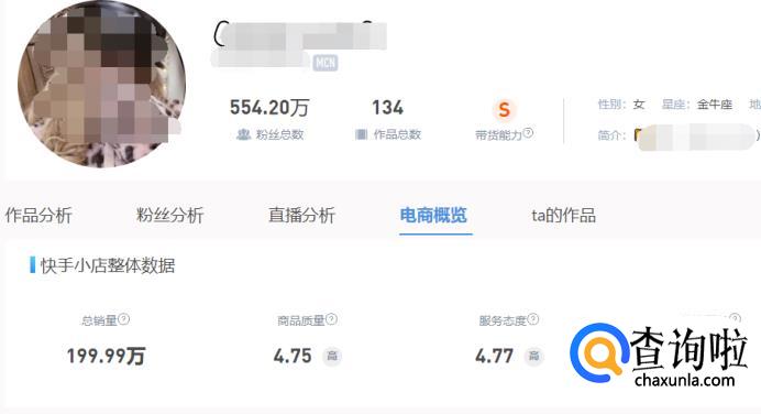 点击主播,可以看到详细的分析,主播带货能力,主播商品质量,服务态度,物理服务,总销量等等,花钱购买服务还可以查看小黄车在手商品分析,查看详细情况。