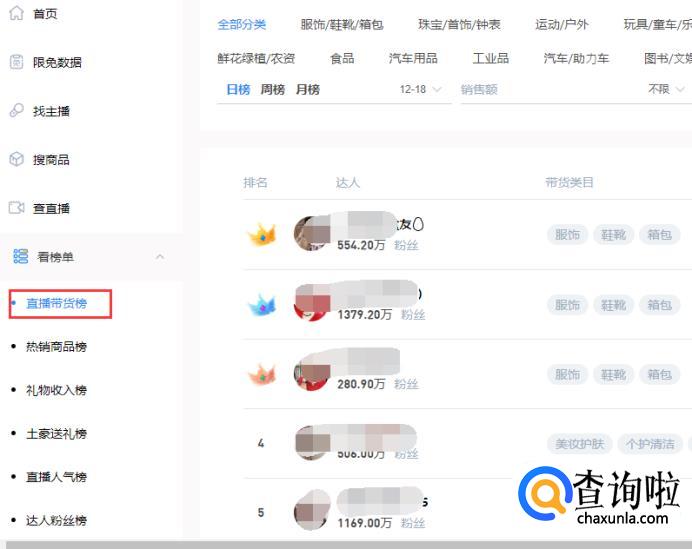 如果要找带货主播,我们可以去“壁虎看看”这个网站,上面有直播带货主播的排行榜。