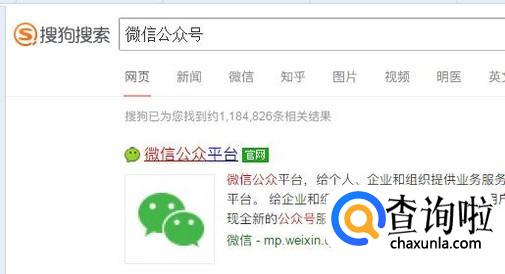 打开搜狗浏览器,在搜索框中输入“微信公众号”,点击公众号的官网进入页面。