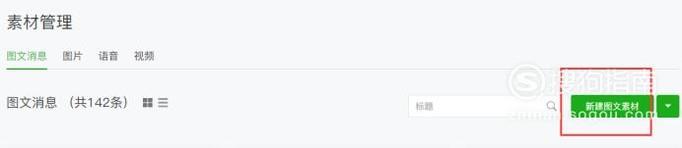 进入素材管理页面,点击右侧方的“新建图文素材”