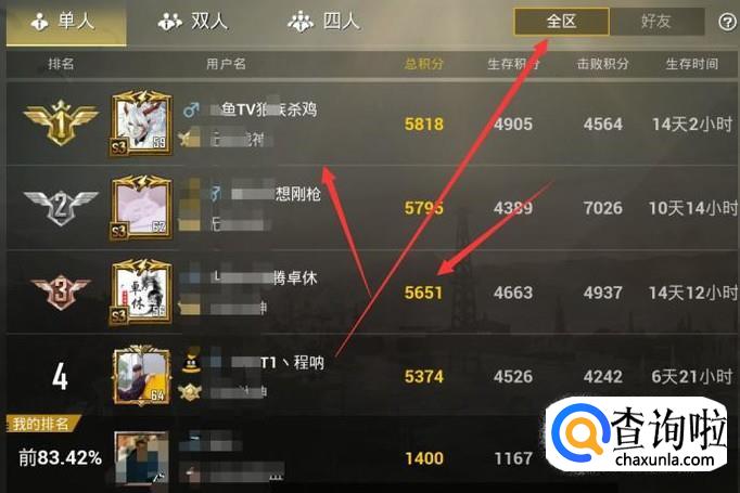 然后你会看到整个全部区服的排行名次了。