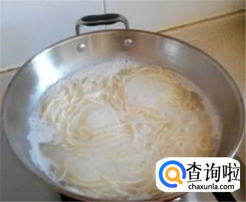 锅里烧开水,把面条放进去,用筷子搅拌防止黏连在一起。