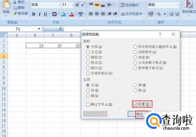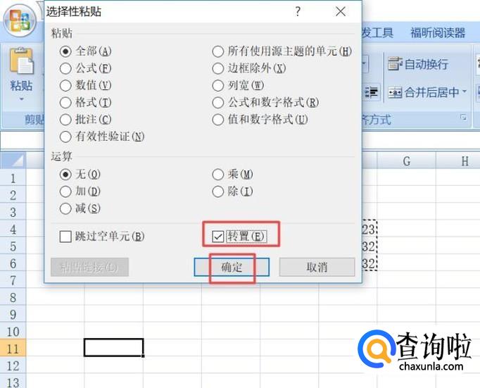 弹出的界面,我们勾选上转置,之后我们点击确定;