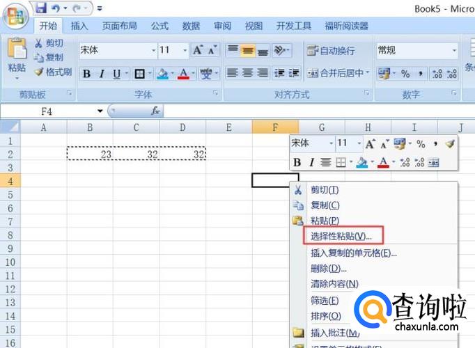 之后我们点击其他的任意一个单元格,之后我们右击,弹出的界面,我们点击选择性粘贴;